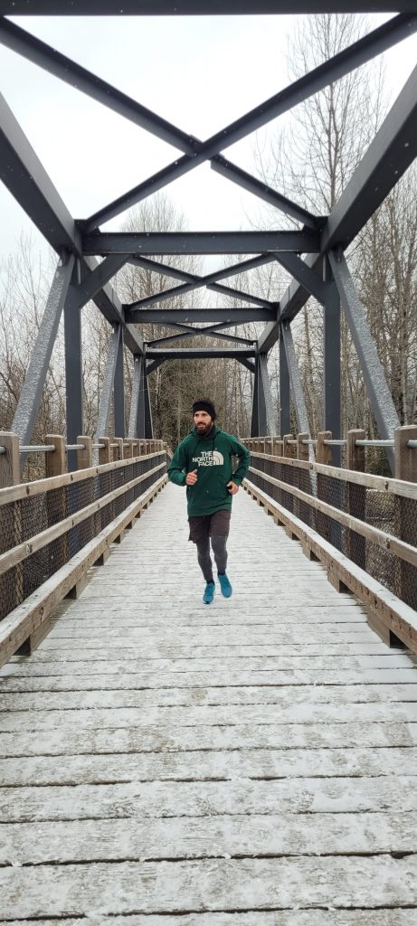 Je passe cet hiver à Revelstoke, une station de ski en Colombie-Britannique. En revenant de France, j’ai pris mes affaires de ski de randonnée avec moi, afin de profiter des montagnes et du magnifique parc national des glaciers à 50min de route. J’arrive à rencontrer quelques francophones sur place et c’est parti pour quelques sorties en ce début de saison. Pendant ce temps, je suis également à la recherche d’un travail dans la restauration. Les semaines défilent, et après 2 semaines en janvier avec des températures très froides, jusqu’à -35°, accompagnées d’un stress permanent par rapport au van qui pourrait ne pas supporter de telles températures, la recherche de travail ne porte toujours pas ses fruits. Côté entraînement, les sorties de ski ont vite été remplacé par de la course à pied pour des raisons pratiques.