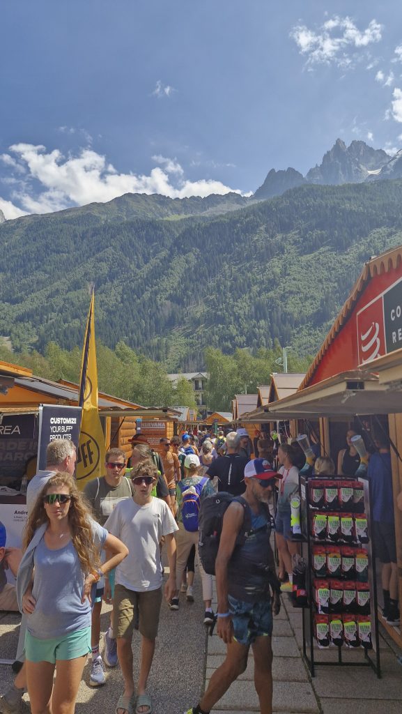 L’après-midi, il est temps de se diriger vers le village de l’UTMB, où plus d’une centaine de marques sont présentes pour présenter et proposer leurs produits. L’ambiance y est cool, détendue, avec des animations telles que des conférences, la présentation des athlètes élites, des diffusions de films, les remises des prix et la récupération des dossards. J’en profite également pour aller à la rencontre de différentes marque que j’avais repéré à l’avance, afin de me présenter et d’avoir un premier contact en vue de ma recherche de sponsors et de partenaires pour mon projet Iditalaska. C’est l’endroit idéal, et selon les marques, j’arrive soit à discuter directement avec quelqu’un en charge du financement de projets soit à récolter les bonnes adresses mail et pouvoir ainsi leur envoyer mon dossier de presse.