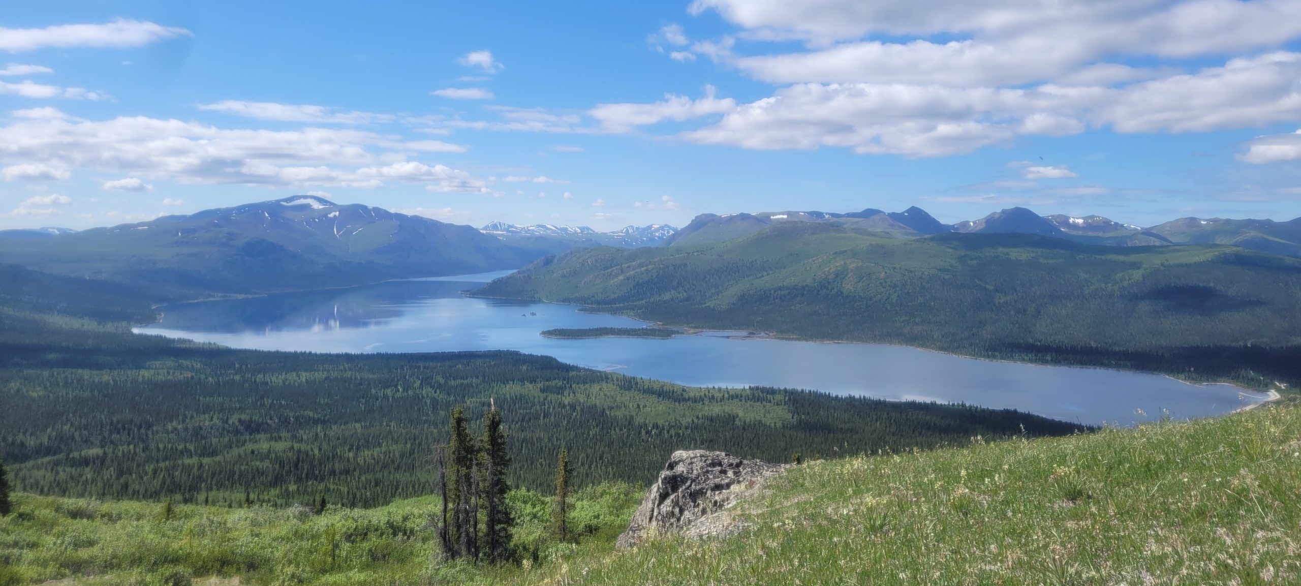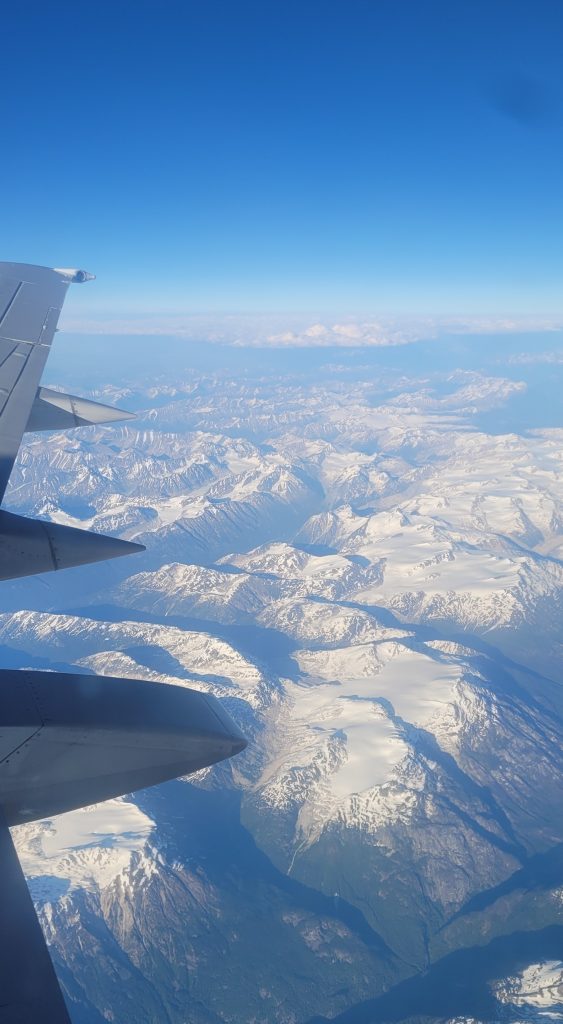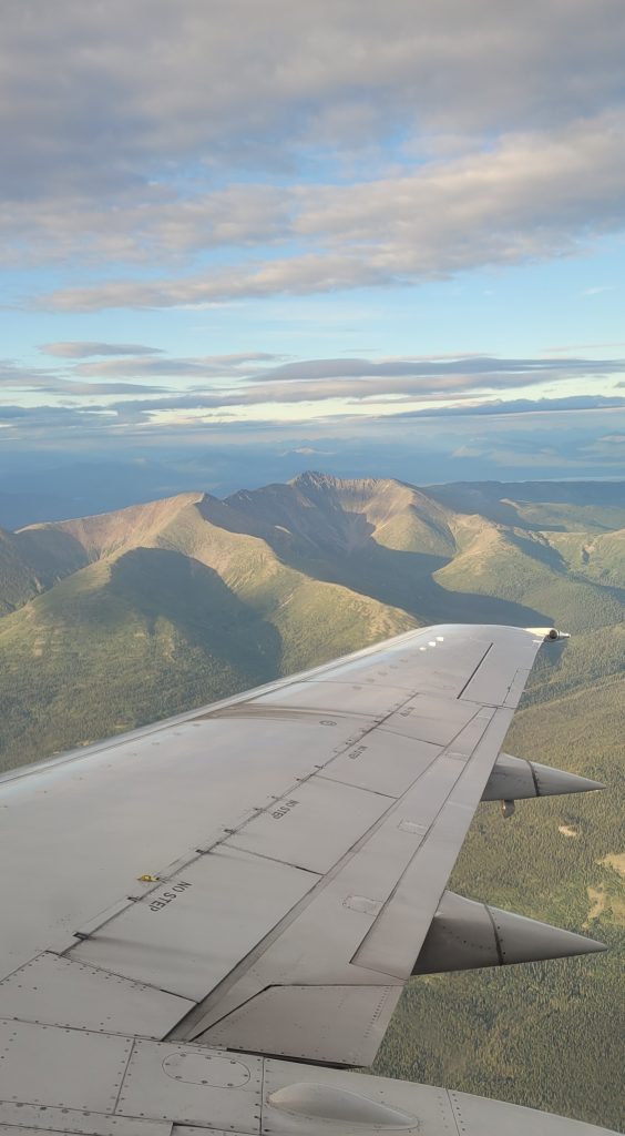 Vendredi, départ de Canmore pour Kelowna, d’où je m’envole direction Whitehorse. Le vol est magnifique, les Rocheuses d’un côté, l’océan Pacifique de l’autre et enfin le Yukon, où je peux même reconnaître les différents sommet grimpés l’année passée comme Montana Mountain, Grey Mountain ou encore Mont Lorne (photo de droite).