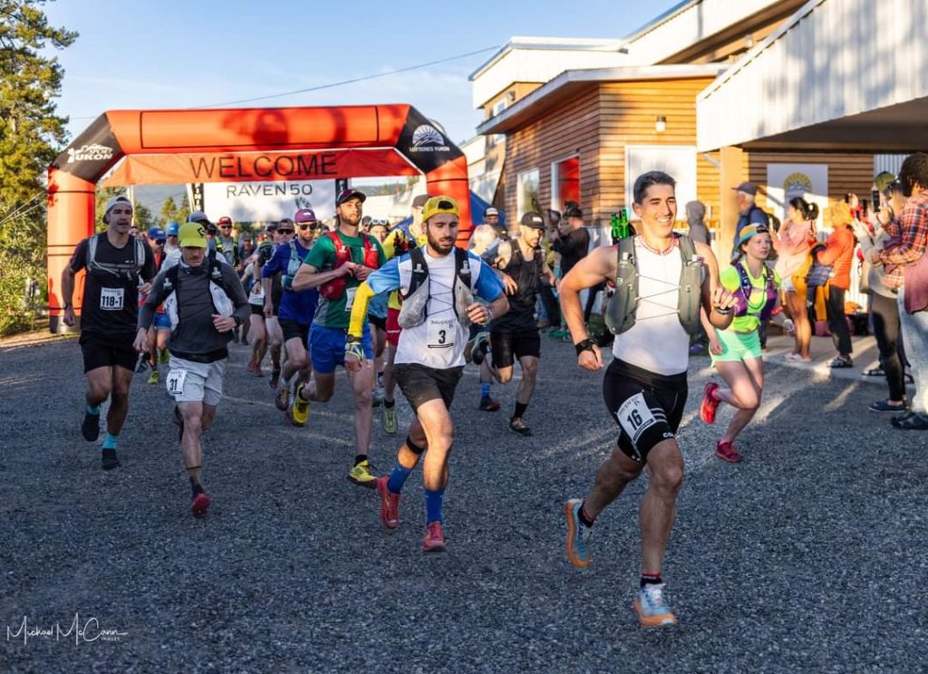 Nous sommes seulement 8 petits jours après Tackle the Toad (résumé juste là) et ses 50km, et me voilà de nouveau sur une ligne de départ, celle de la Raven 50. Au programme, 50 miles (82km) et un peu moins de 3000D+*. Un ratio assez peu important, mais qu’il ne faut néanmoins pas négliger avec de belles côtes à grimper et surtout à redescendre. Elle se déroule au Yukon, dans la ville de Whitehorse, 300km à l’est de l’Alaska. C’est dans cette ville que j’ai vécu durant quasiment 1 an, et expérimenté la vie de musher. Ce ne sera donc pas ma première fois sur ces chemins, spécialement car j’ai déjà participé à cette course l’année précédente. M’y revoilà donc de nouveau, avec de l’entraînement en plus et l’expérience de l’évènement, prêt à tout donner.