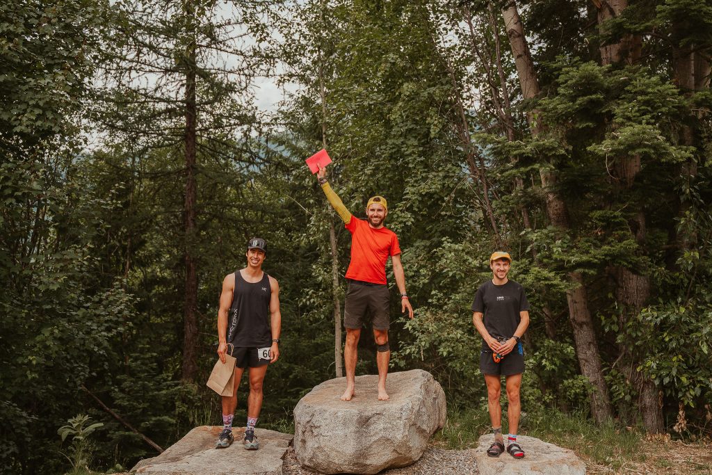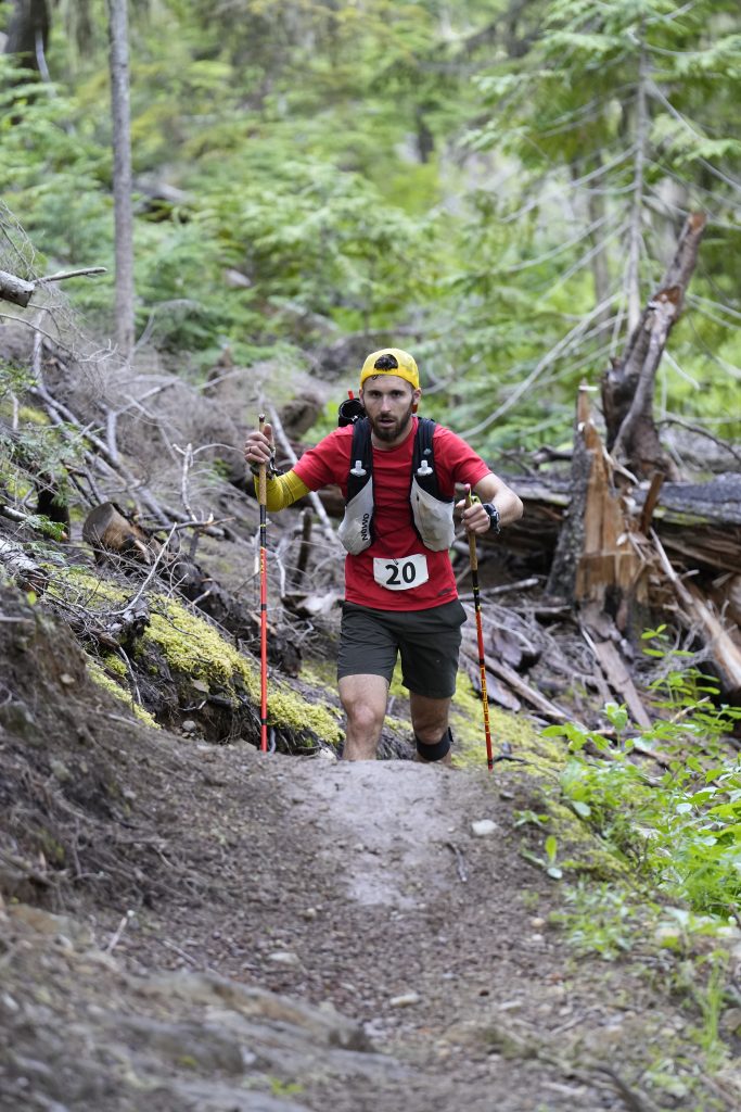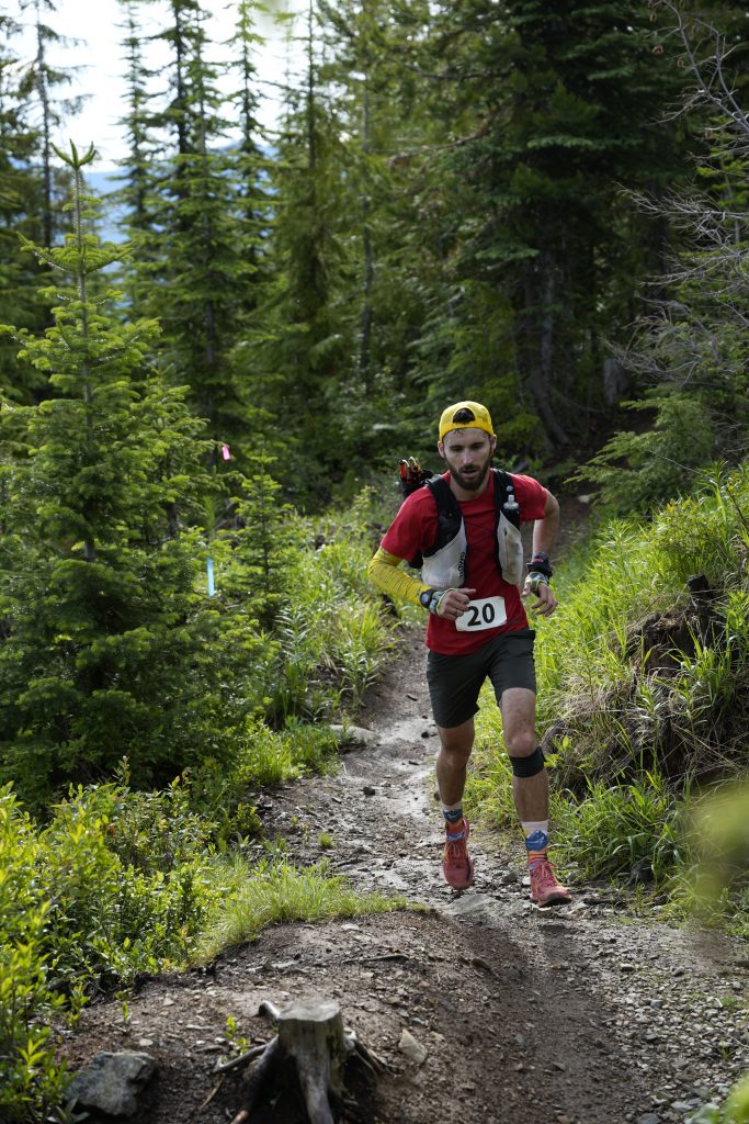 9′ plus tard, c’est Kiah qui arrive en seconde position suivi de Shota Ida, un kiné de Revelstoke dont j’avais suivi une conférence cet hiver sur les blessures en course à pied, seulement 1′ après.