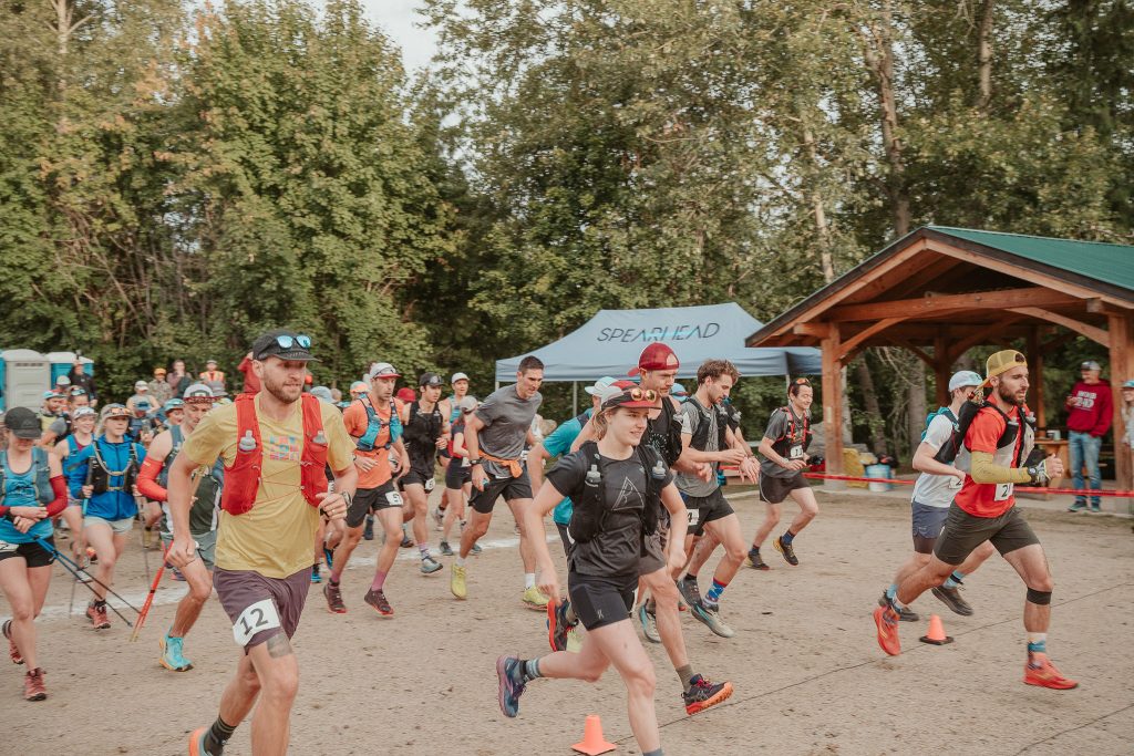 Le départ est prévu pour le samedi matin à 6H. Je pars de Canmore le jeudi après mon service du soir et m’arrête après 2H de route pour passer la nuit à Invermere. Le lendemain, après 4H de route en plus, j’arrive enfin à Nelson. Après quelques dernières épingles sur une route en terre, j’arrive enfin sur le lieu du départ/arrivée pour récupérer mon dossard. Ce sera le numéro 20. Je ressens déjà la bonne ambiance de l’organisation, cool, détendue, à qui ça fait juste plaisir d’être là!! Je redescend la route en terre et me gare sur un petit parking juste au début de celle-ci. Nous ne sommes vraiment pas loin du départ, à peine 1km. À cet endroit, je fais la connaissance de Guillaume et Anne-Gaëlle, 2 français en roadtrip dans les alentours et participant au 21km le lendemain.